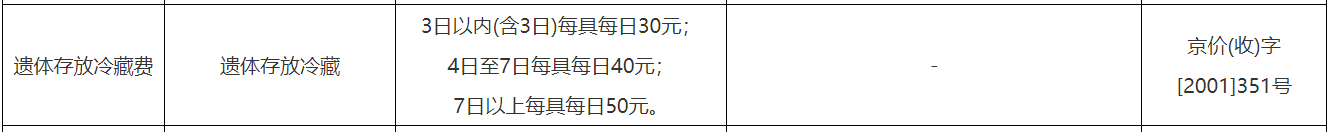 殡仪馆的遗体冷藏业务,都是由殡仪馆明码标价的,以昌平殡仪馆为例,收费情况如下: